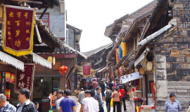 貴陽市から南29kmの所に位置し、貴州省の四大古鎮の一つで600年もの歴史があるプイ族、ミャオ族の街です。明代(1378年)に作られ、かつては明、清代の軍事要塞でした。数多くの古い民家もまだ残っており、明、清代の建築物博物館ともいわれています。