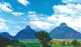貴州省黔西南プイ族ミャオ族自治州貞豊県より9kmにあり海抜は1,266m、面積は40万㎡。高さ260mの双乳峰はカルスト峰林の中でも絶品といわれ地元プイ族では千年来「大地の母」、「生命の源」と呼ばれ崇拝されてきました。世界の地質学から見てもこのように完璧なフォルムで現存している峰は類例がないといわれ国内外の観光客をはじめ研究者、参拝者の来訪が後を絶たちません。
