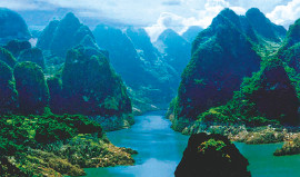 貴州省西南部興義市の東に位置し、国家級風景名勝区で、貴陽から330km離れています。カルスト地形の観光地で、「谷秀」、「峰奇」、「湖美」が特徴です。7kmの峡谷に60あまりの滝があります。滝の落差は200mぐらいです。馬嶺河大峡谷は「地球の一番美しい傷痕」と言われています。